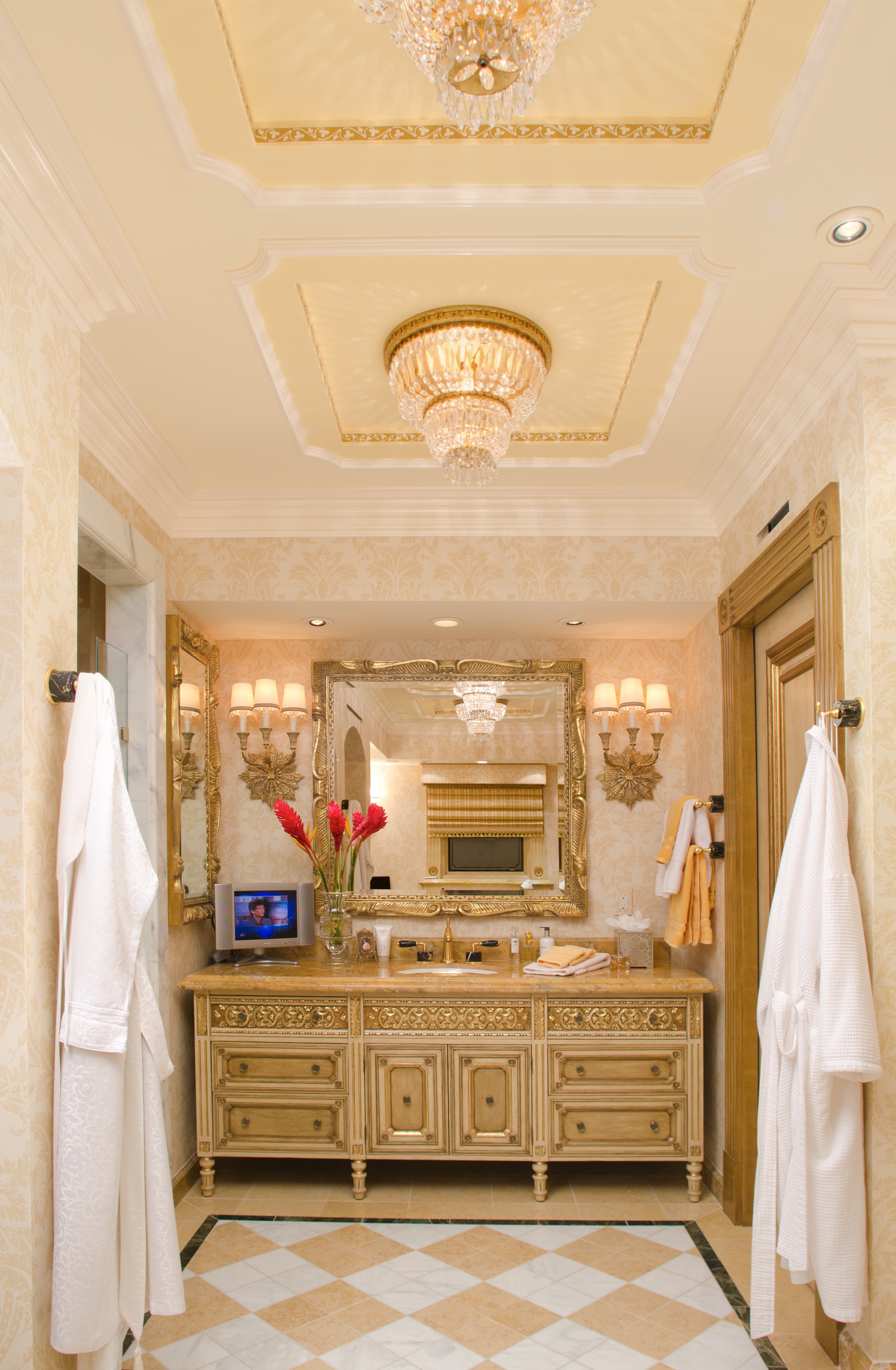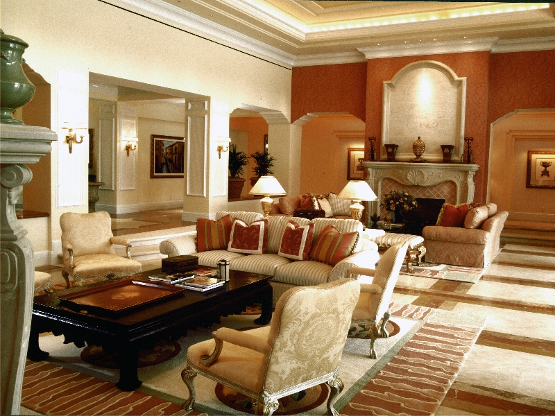 At The Grand Del Mar, a one-of-a-kind luxury resort just north of San Diego, we designed each and every ceiling differently: using such techniques as hand stenciling, frescoes, elaborate wood, stone or fabric inlays, wood beams and light coffers. In this particular project, we were intent on using ceiling designs that reflect what is seen in many historic buildings throughout Europe. Most importantly, these ceilings are all in keeping with the interiors – an intricate Mediterranean style – and never fail to amaze visitors.